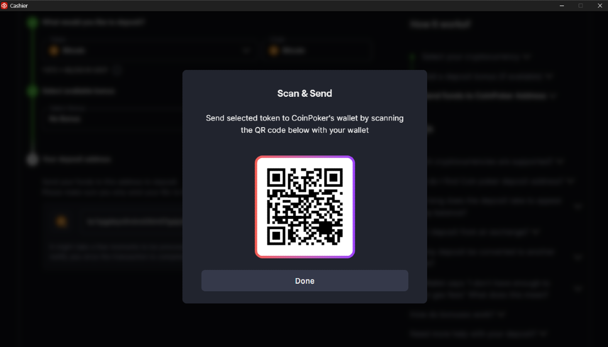 6. Envía Tu Depósito a la Dirección de la Wallet de CoinPoker: