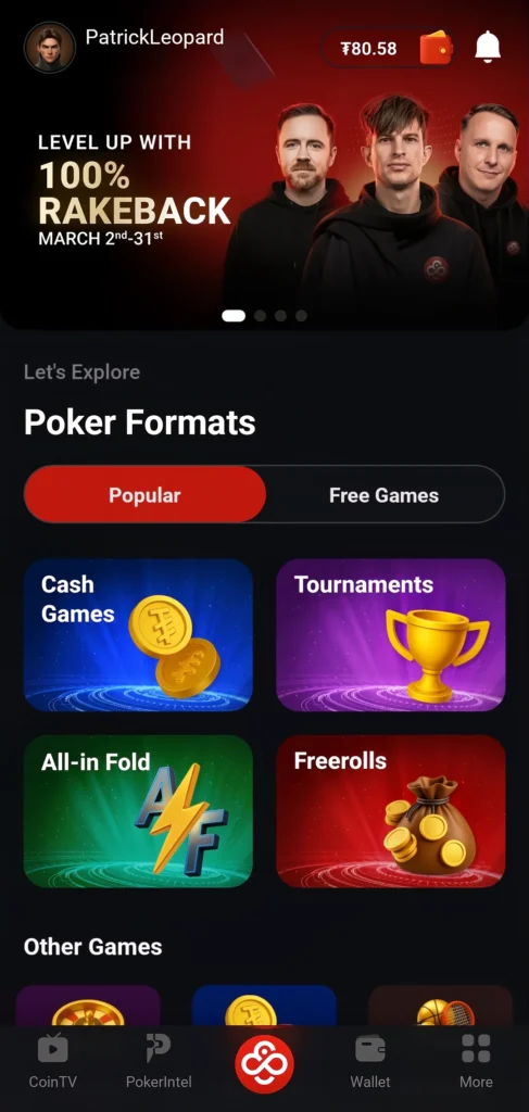 Vuelve a CoinPoker, inicia sesión y empieza a explorar nuestros juegos.