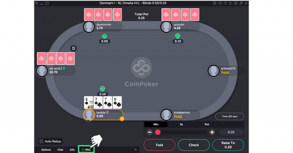 Step 1: Choose any cash game or tournament in the lobby and look for the RNG icon on the bottom left.