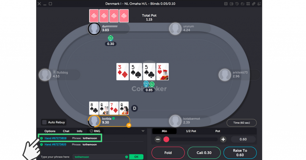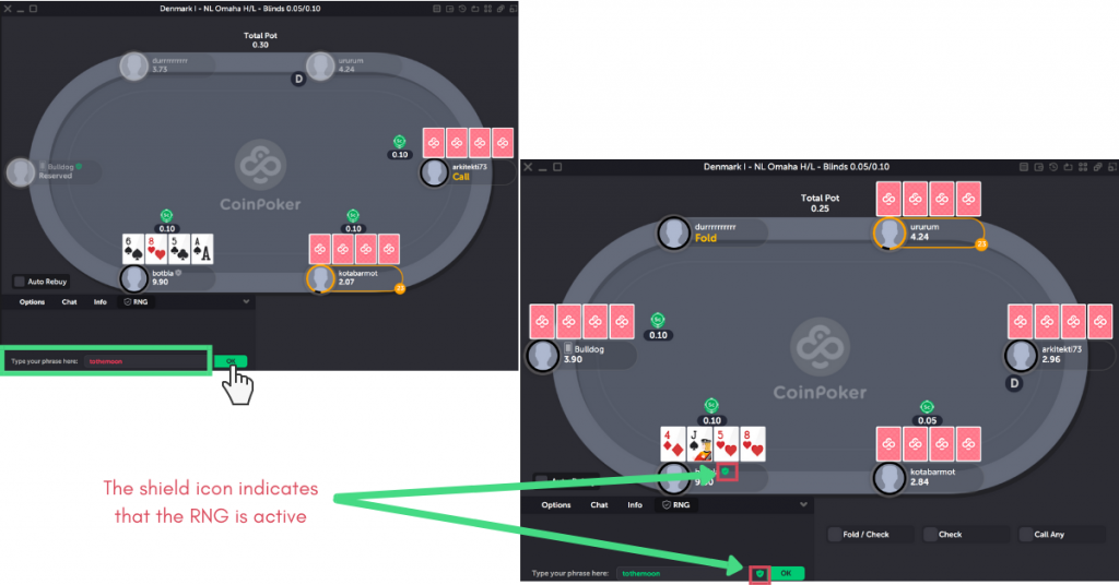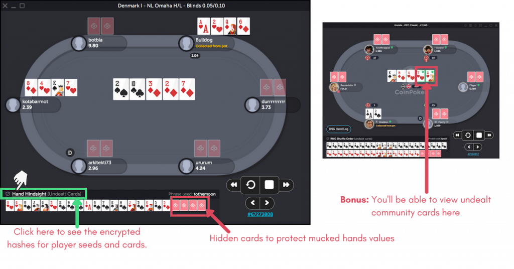 Participating begins by all players using a one-way cryptographic function with a secret “shake factor” to send away to all the other players and CoinPoker. CoinPoker uses all values to create the final shake value and shuffle the final deck.